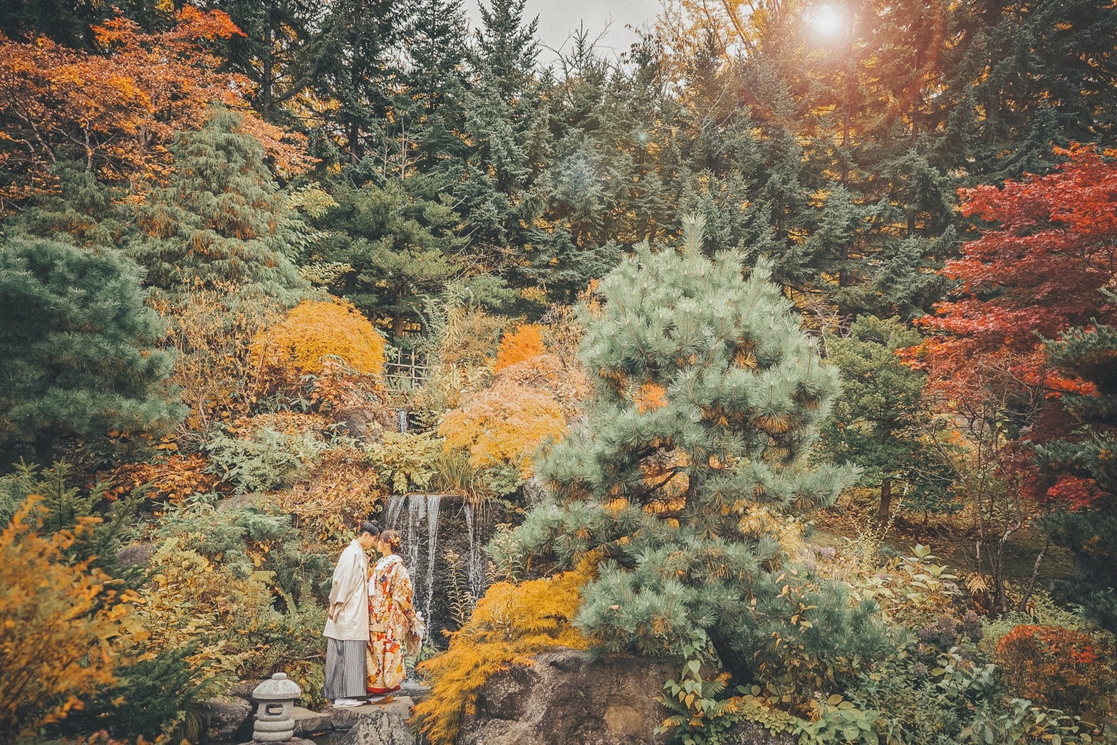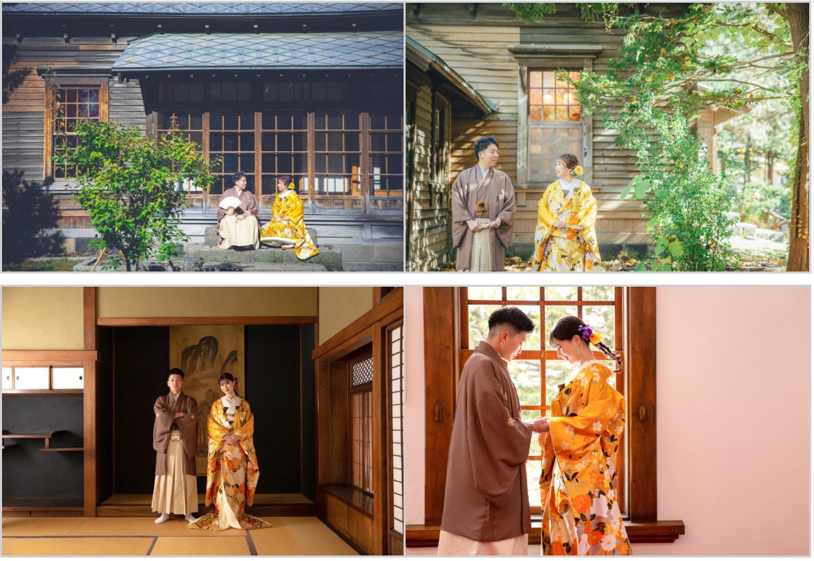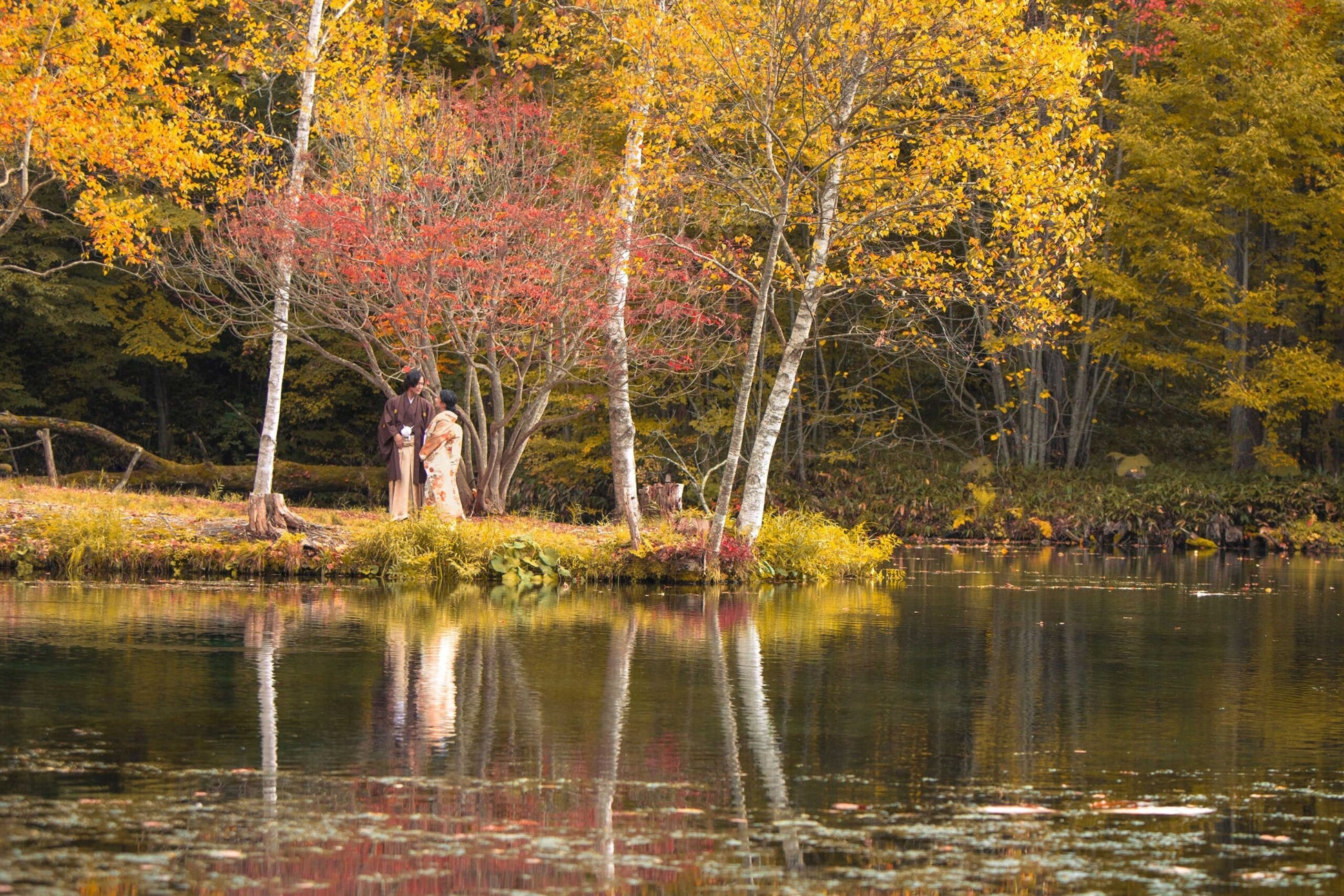 秋は紅葉、冬は一面の雪景色の中でフォトウェディングが叶います。
