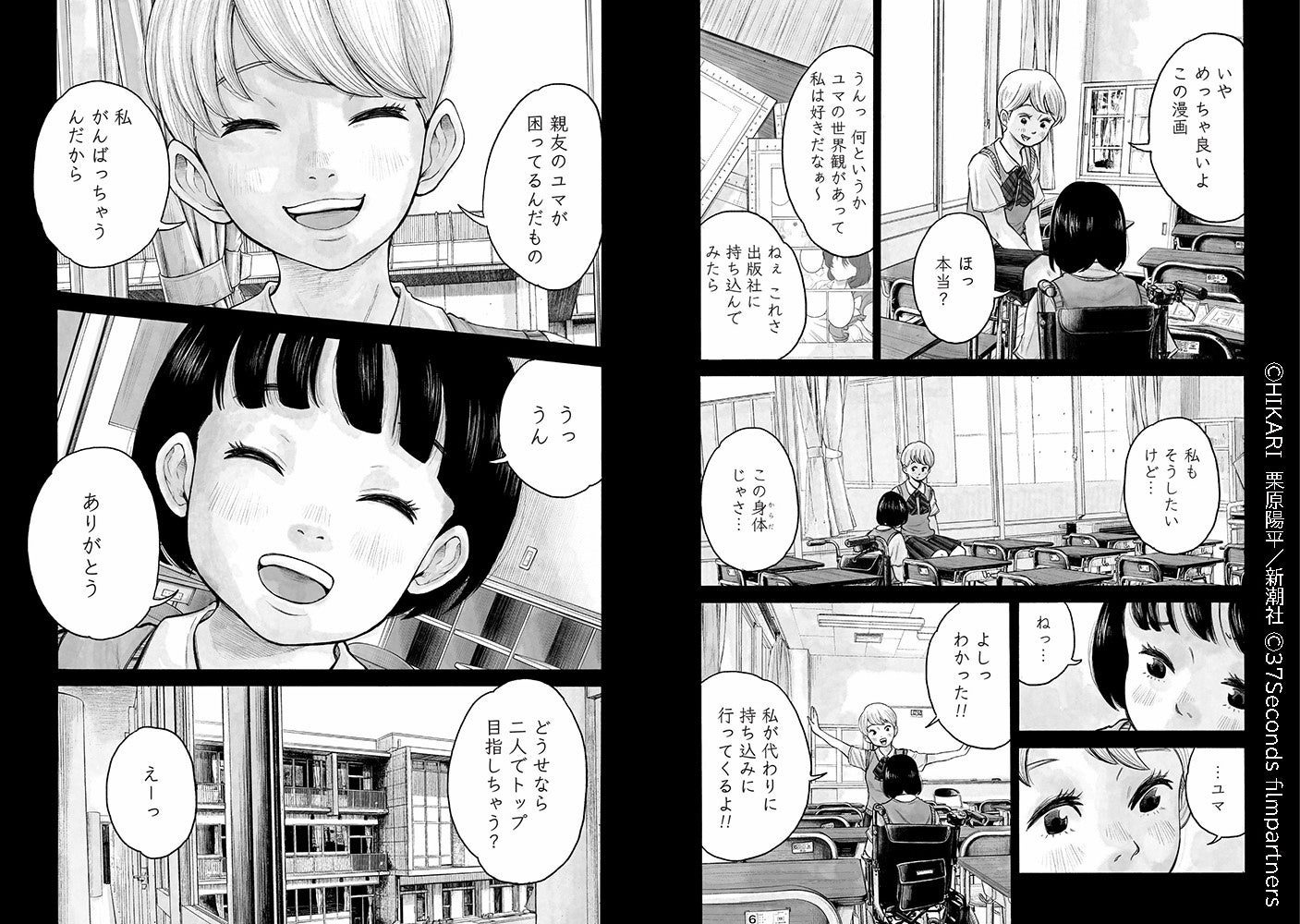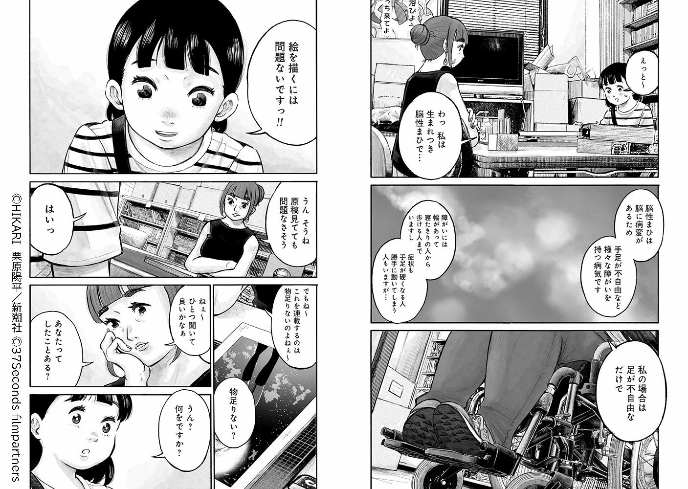 このたび『37セカンズ』という素晴らしい映画のコミカライズを担当できて、とても嬉しく思っております。なかなか自分から触れられない世界を一つ一つ楽しみながら描いていますので、よかったらご覧ください!!(漫画:栗原陽平)