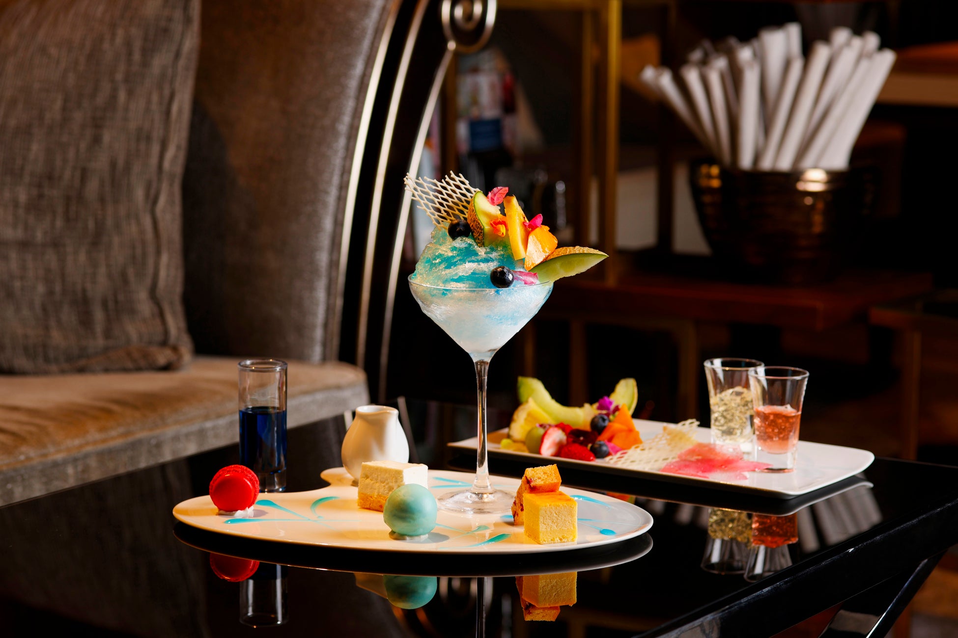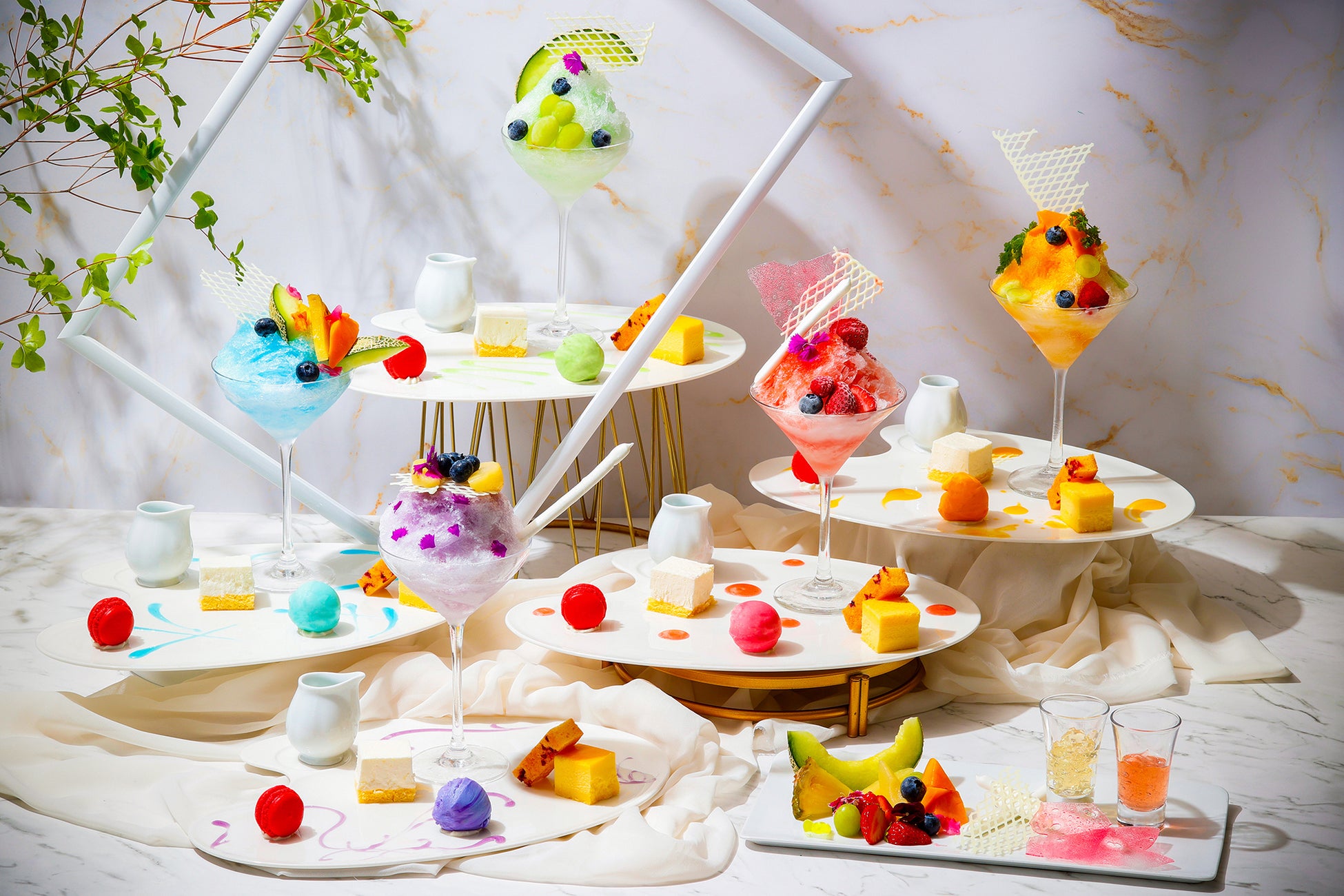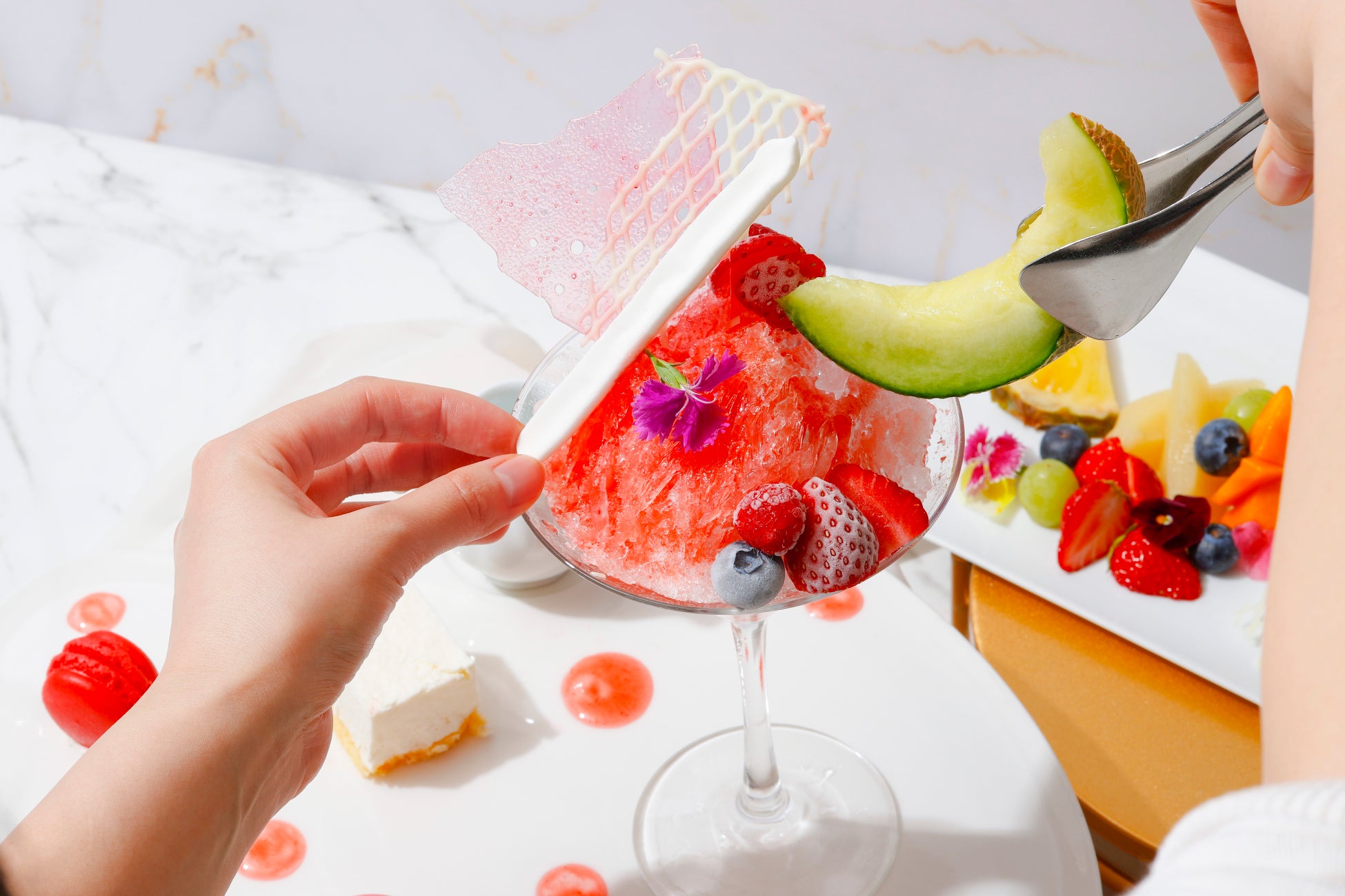 この夏、ザ ストリングス 表参道は、駅からダイレクトインできる洗練された大人のためのラウンジ「TIME NEST(タイムネスト)」にて、お好みのカラーソースを選び、トッピングをカスタムして世界に一皿のオリジナル・アートかき氷パフェを作って味わう新体験をお届け。キャンバスにデザインするように、真っ白なかき氷に自分だけのアートを施したスイーツパレットをお楽しみいただけます。