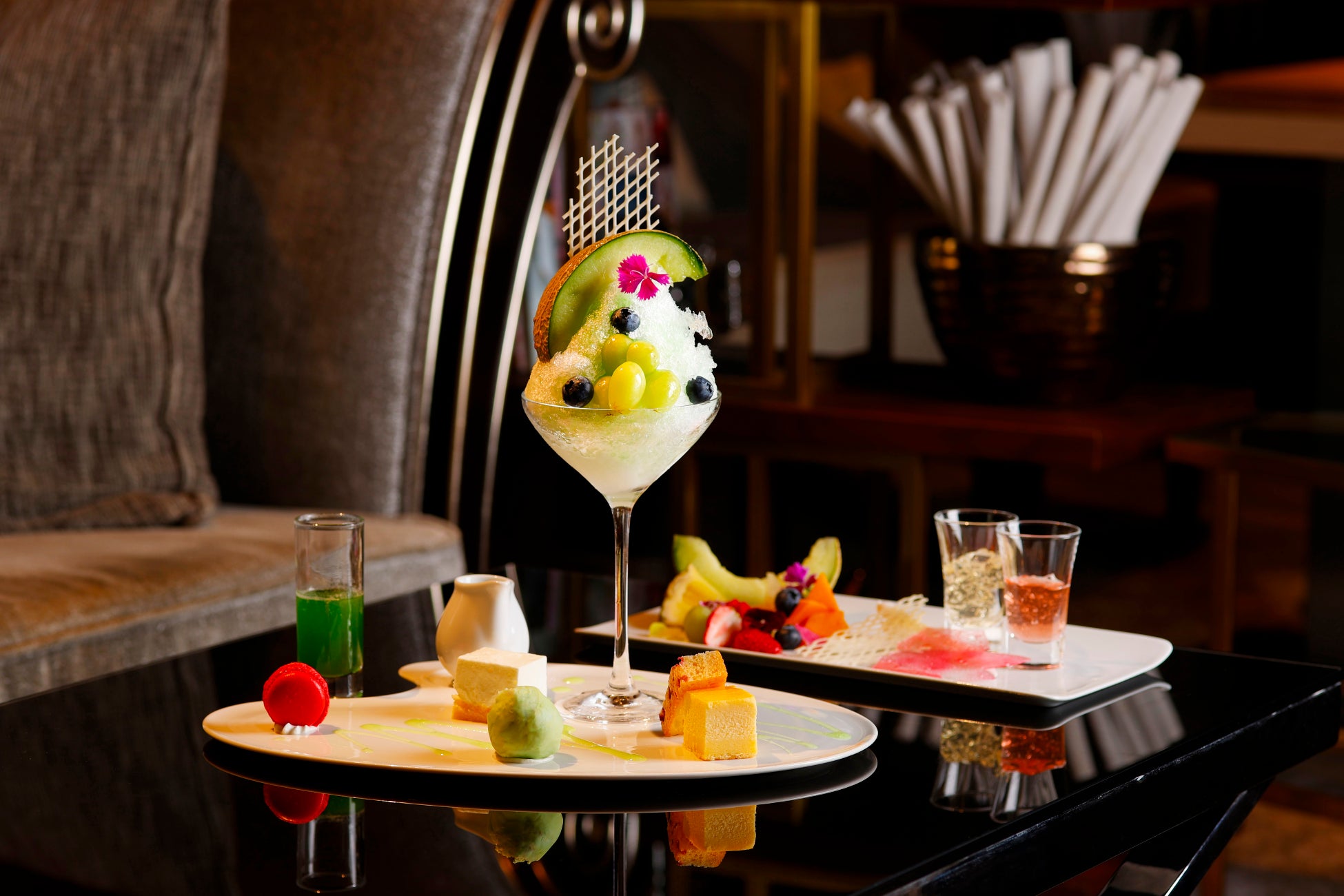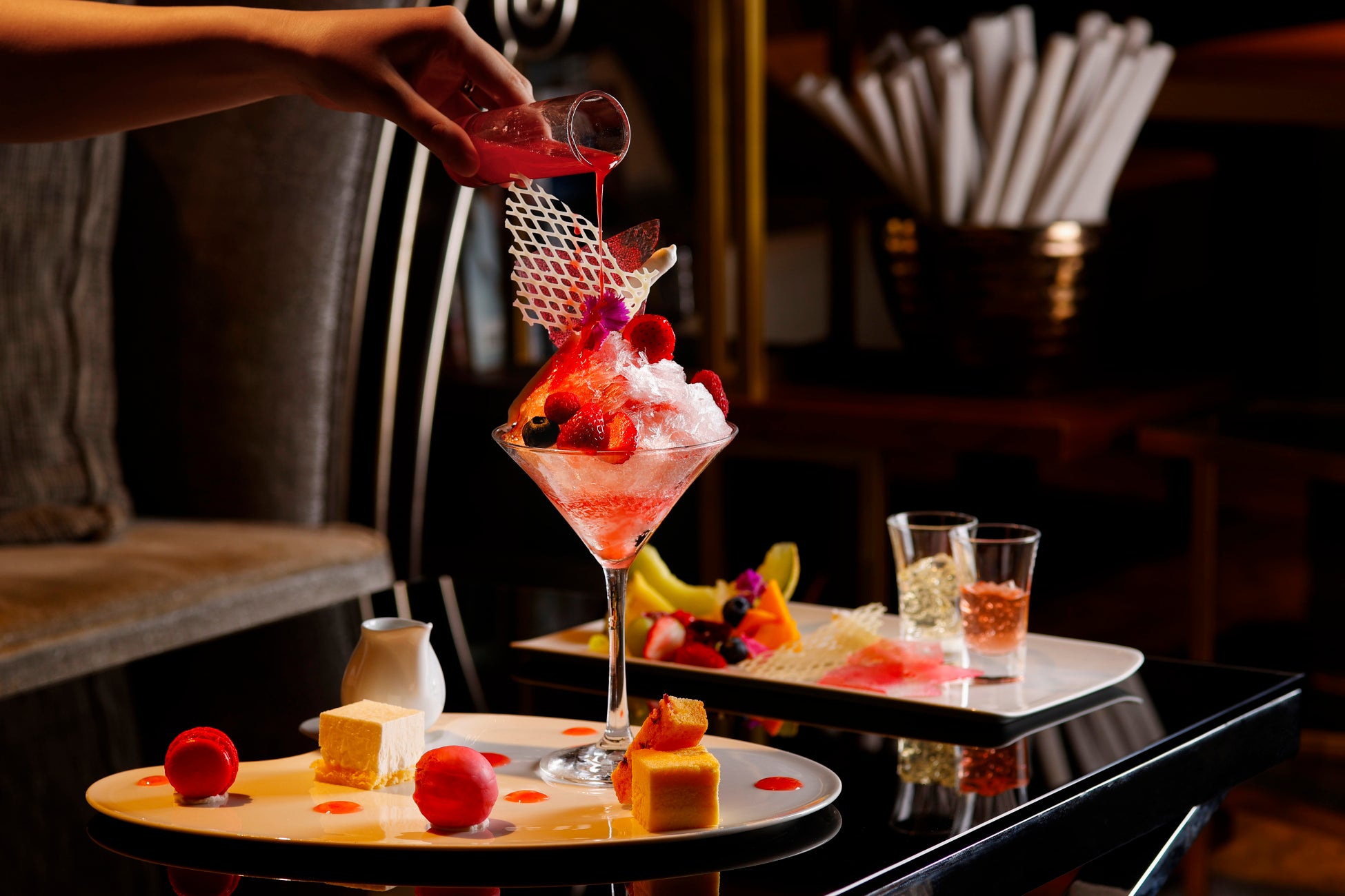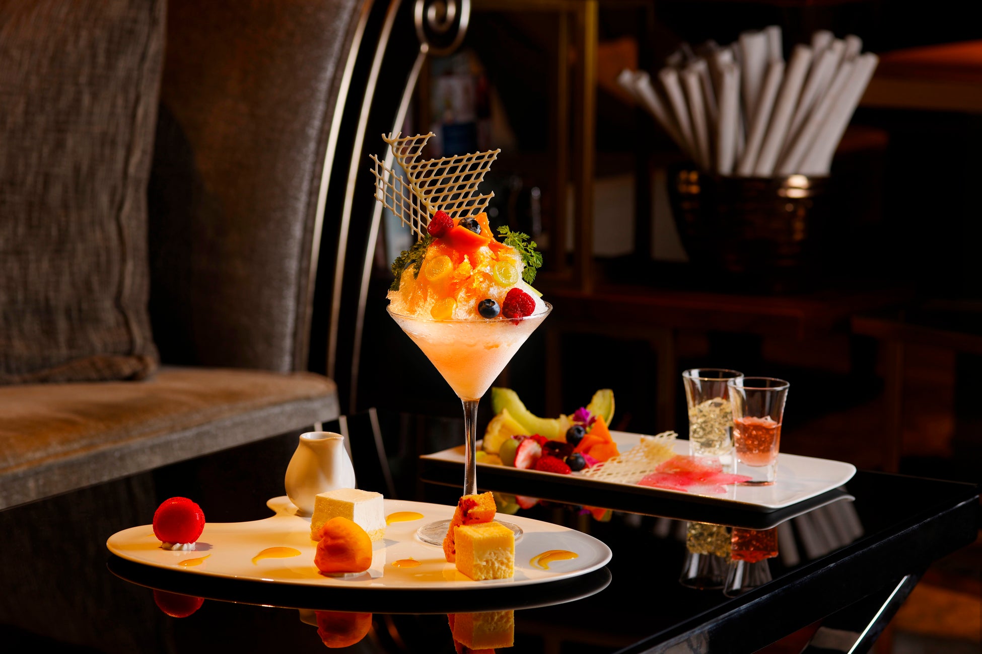 シーズナルフルーツ/チョコレート/メレンゲ/飴細工/シャンパンゼリー/ベリーゼリー