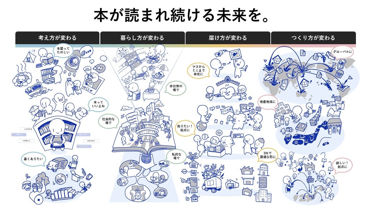 DNPは、出版社や取次、書店をはじめ、本に関係する多くの人々と「対話と協働」を進め、持続可能な出版文化・産業に向けて注力して、本が読まれ続ける未来の実現に貢献していきます。