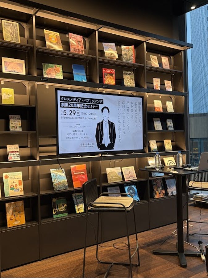 ビジネス書や実用書を中心に出版する株式会社クロスメディア・パブリッシング(本社:東京都渋谷区、代表取締役社長:小早川幸一郎)は、創業20周年を記念して、2025年5月29日(木)、TSUTAYA BOOKSTORE イノゲート大阪にて代表小早川によるトークイベントを開催いたしました。