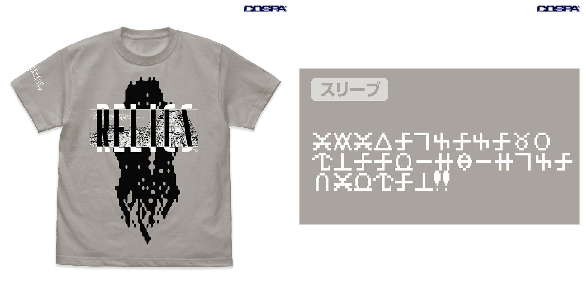 「レリクス」のロゴと精神体の主人公をデザインしたTシャツ