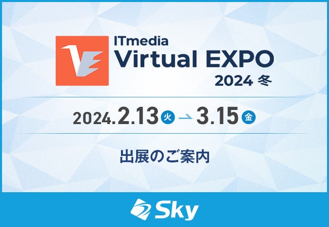 Sky株式会社は、2月13日(火)~3月15日(金)に開催されるオンラインイベント「ITmedia Virtual EXPO 2024 冬」に出展いたします。