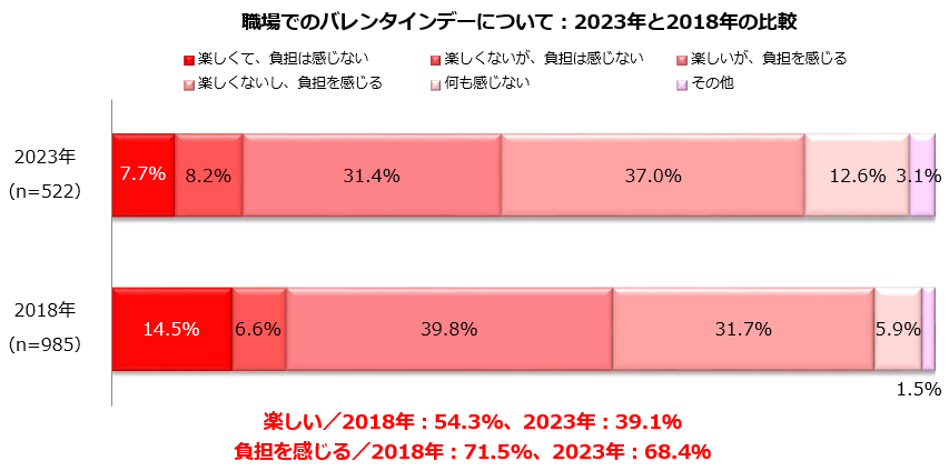 2.職場でのバレンタインデーについて:2023年と2018年の比較