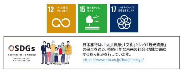 日本旅行では、これからも増加が期待されるインバウンドツアーが、訪れる地域の「人」「風景」「文化」にとって幸いであり続けるために、そして脱炭素社会の実現に向け、お客様と共にさらなる地球環境への貢献を目指します。