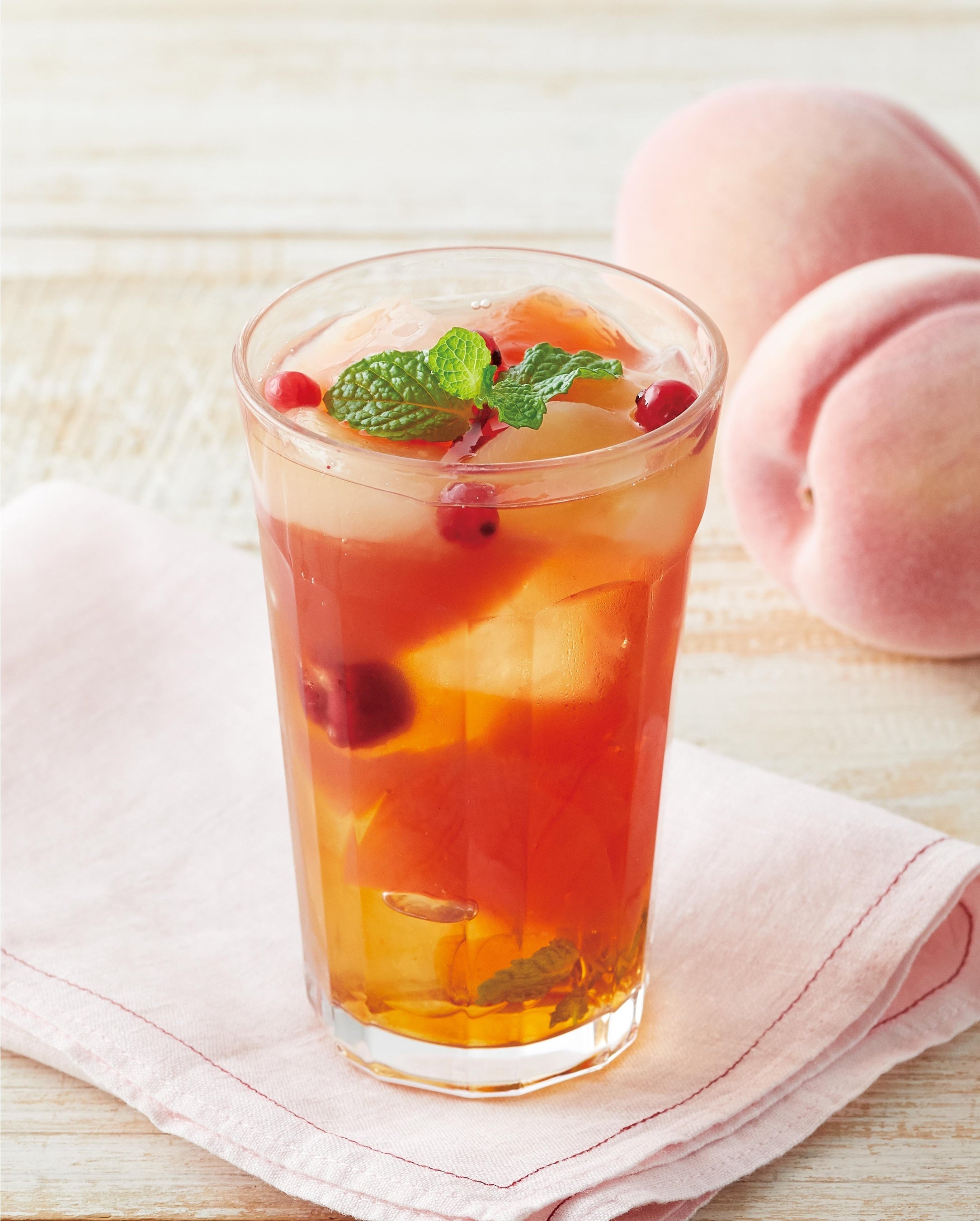 ピーチアールグレイのゼリーに、白桃、レッドカラント、ラズベリーを合わせたジュレッティー。