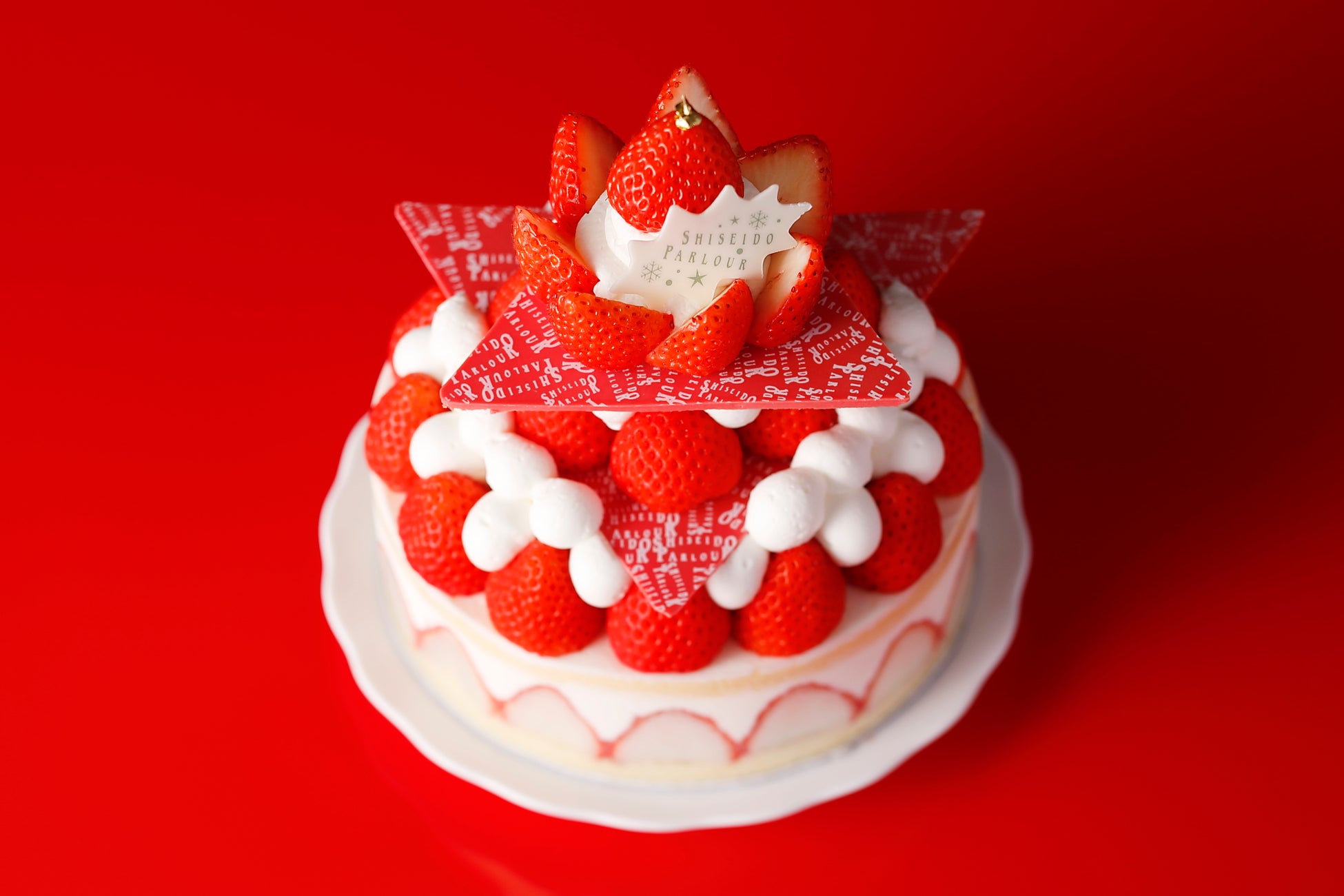 資生堂パーラー自慢のふんわりとした軽い口どけの真っ白な生クリームに真っ赤な苺をふんだんに盛り付け、チョコレートでツリーのようにデコレーションしたショートケーキです。