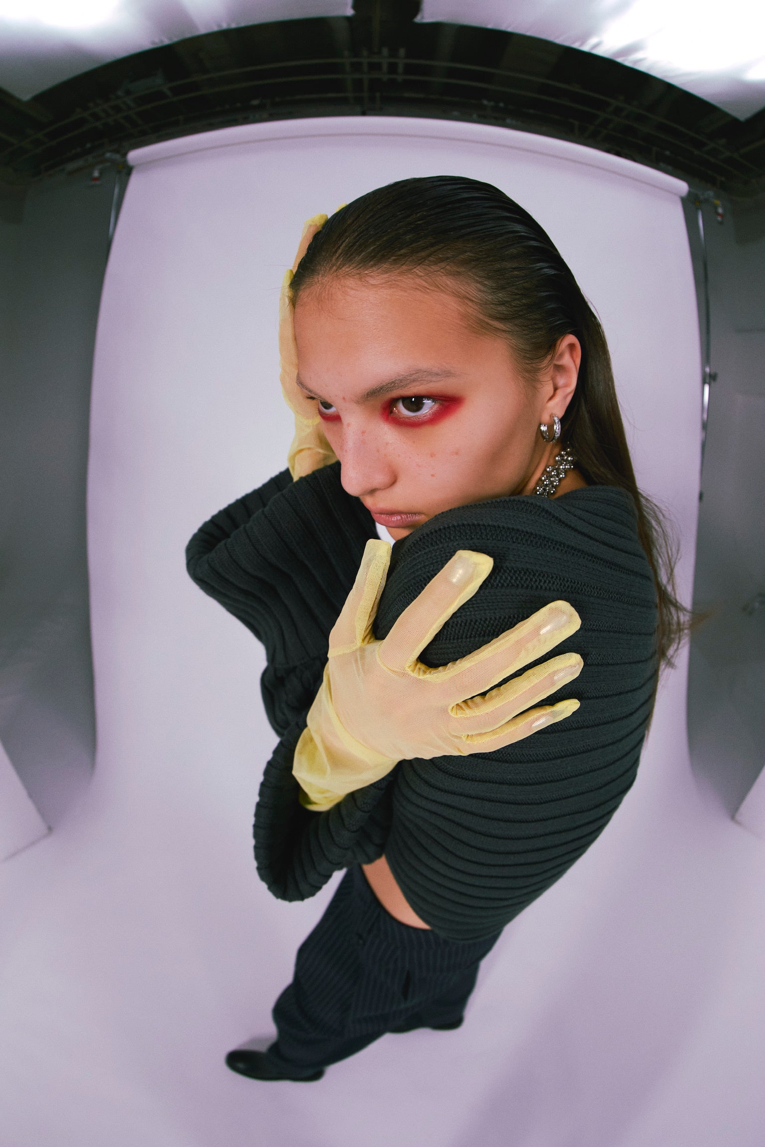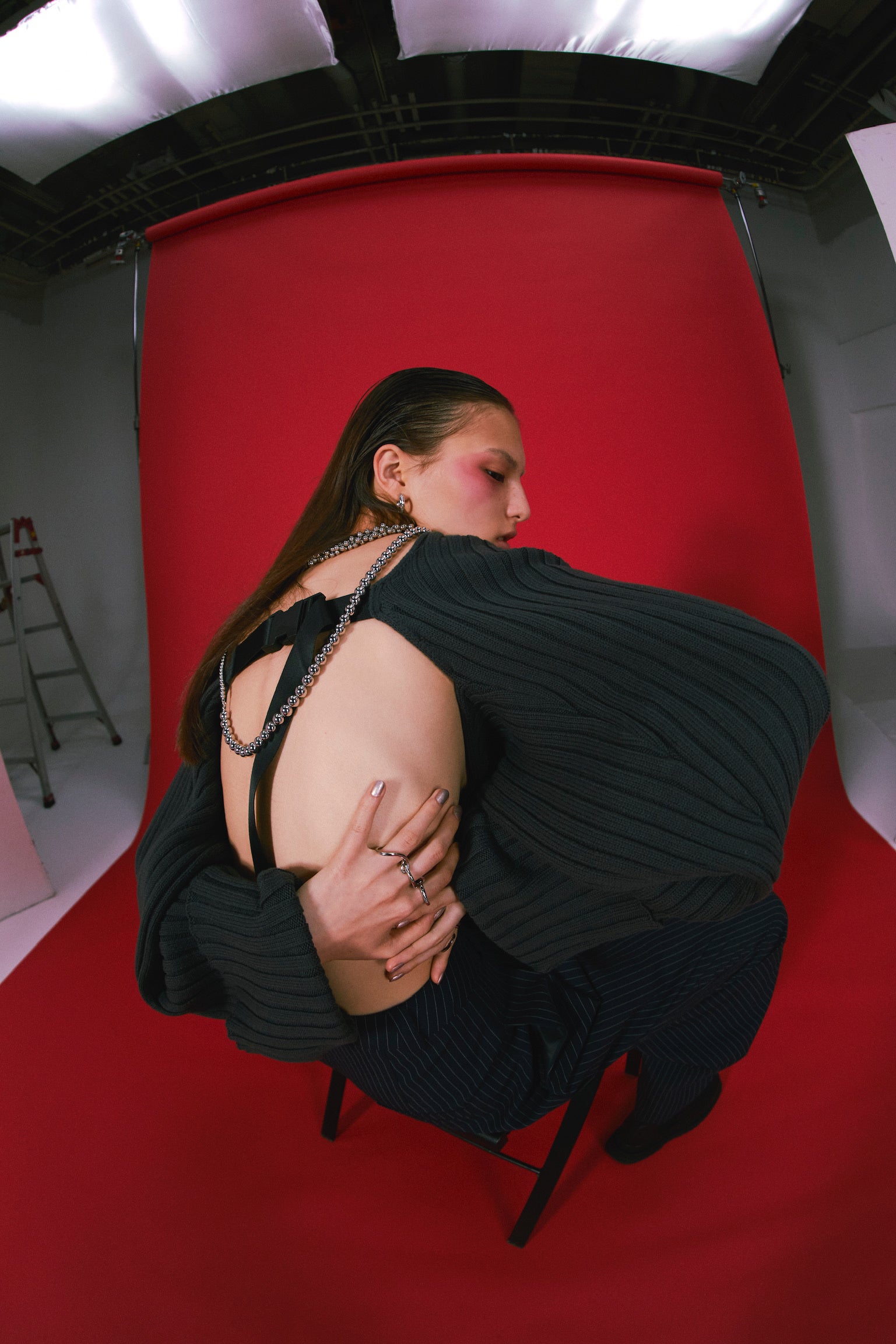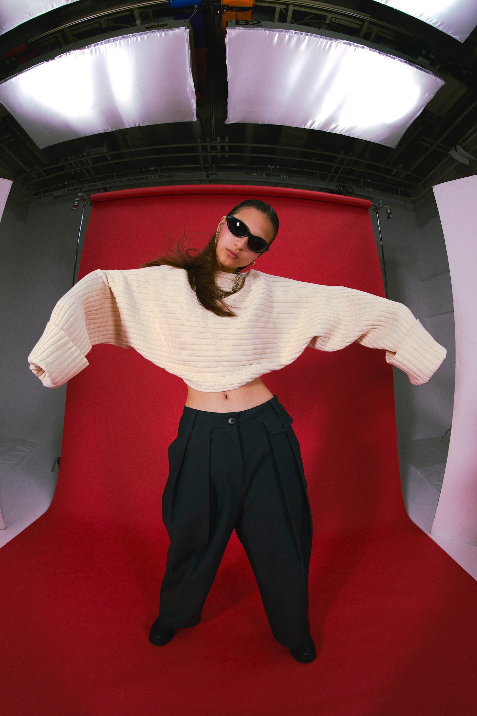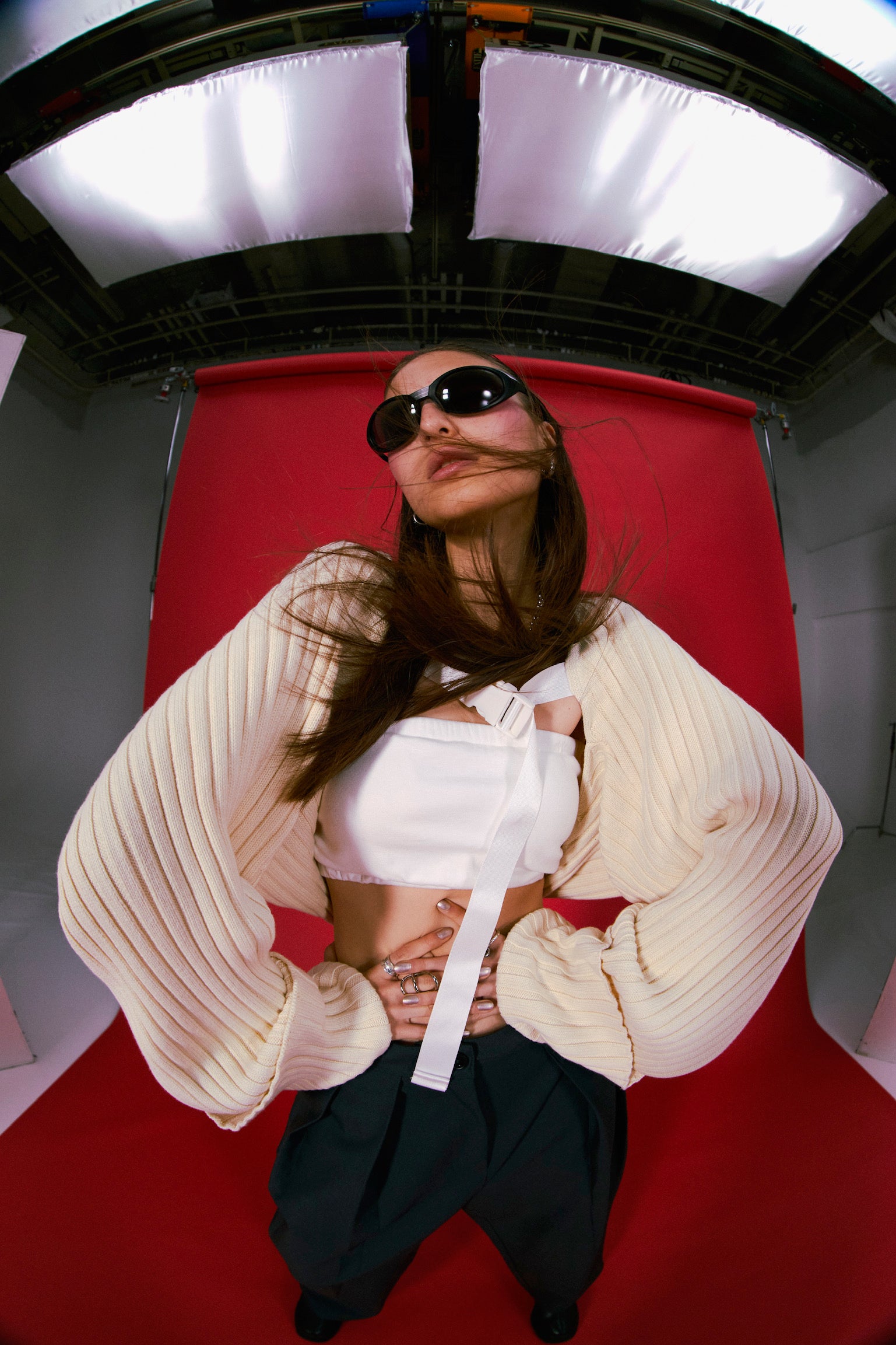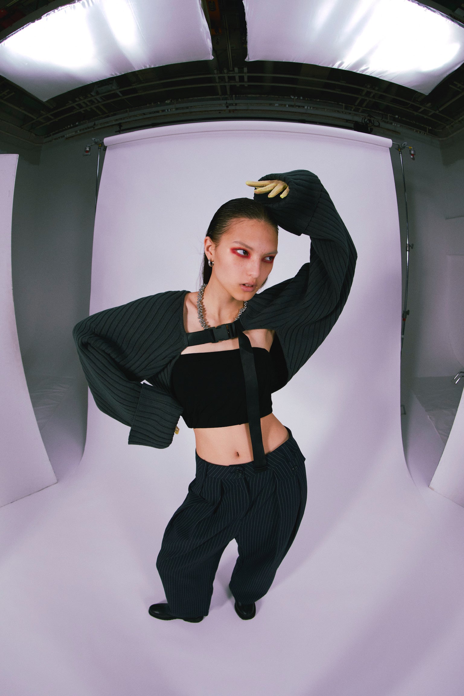 本コレクションでは両畦リブのベルトカーディガンを展開。