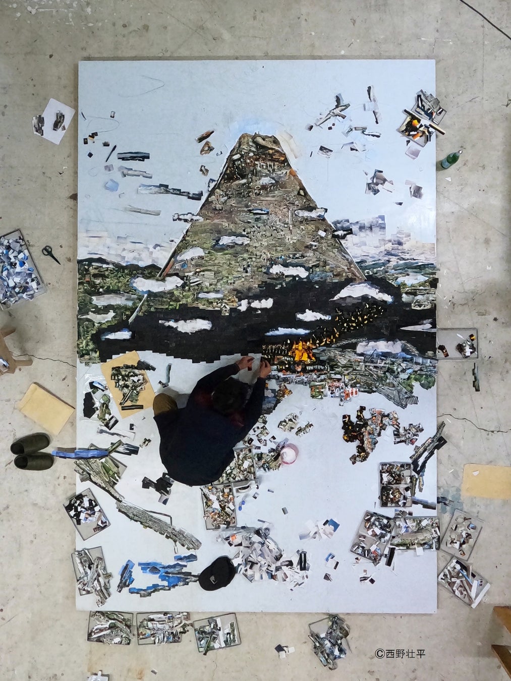 本展は、写真家 西野壮平氏による写真展です。氏の作品は、都市や自然を撮影し、その写真の断片を記憶に基づいて画面上でつなぎ合わせる、写真コラージュで制作されています。その過程は、膨大な手作業の積み重ねによって成り立っています。