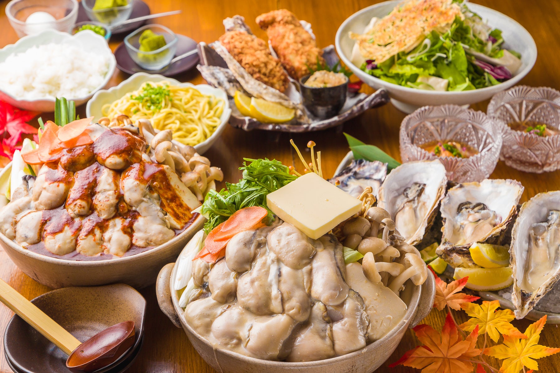 自慢の牡蠣鍋をたくさんの人に味わって欲しいから、お得なコースもご用意いたしました。その日に仕入れた生牡蠣の食べ比べやこだわりのカキフライも堪能できる“牡蠣のフルコース”は、ご友人や同僚とのお集まりや、歓送迎会などにもおすすめです。