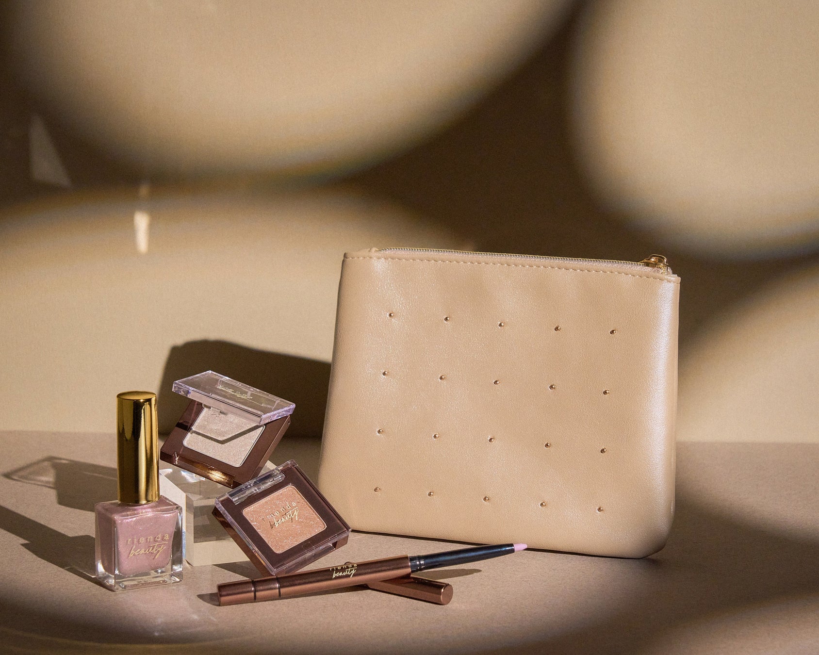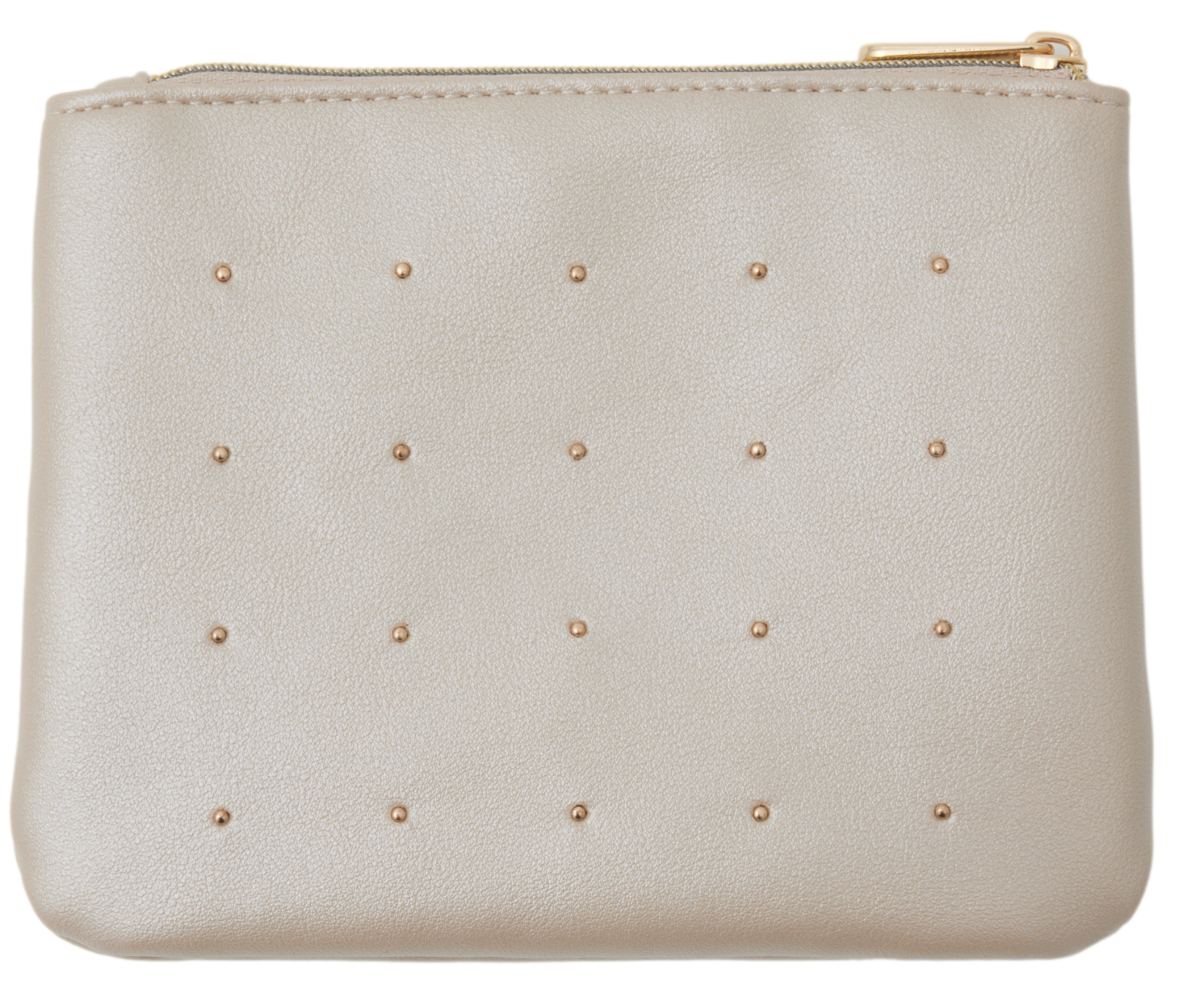 上品なシャンパンカラーにゴールドのスタッズがアクセントを添える、