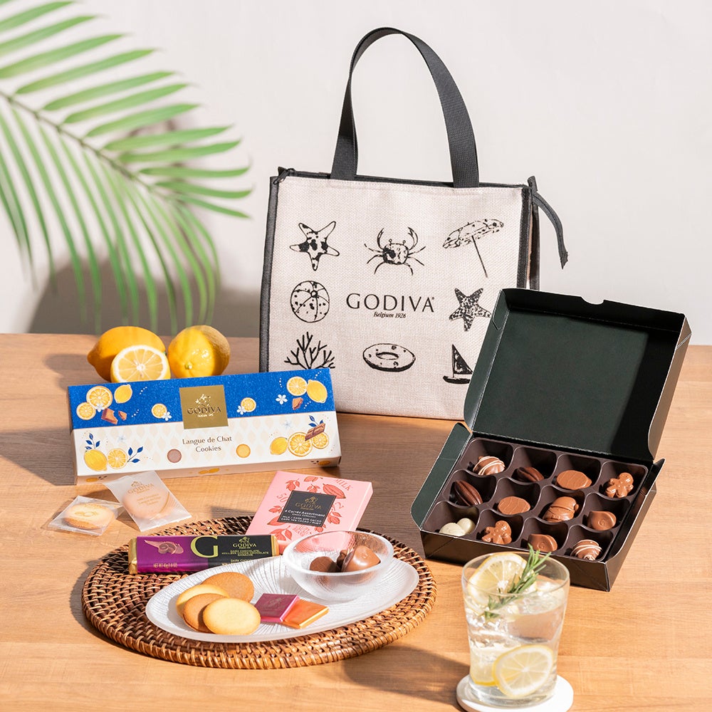 麻風素材が上品なオリジナル保冷バッグに、チョコレートと焼き菓子を詰め合わせた夏季限定のセット! 「ゴディバ サマー スペシャルセット」