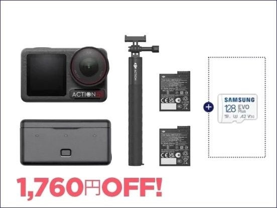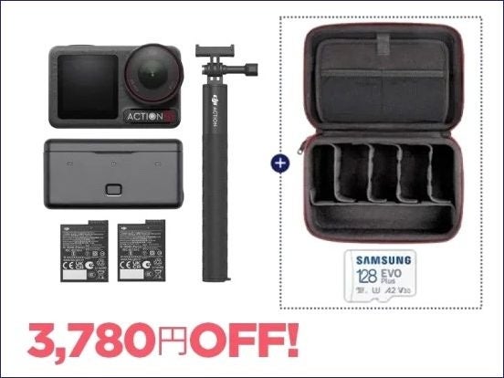 DJI Osmo Action 5 Pro スタンダードコンボに128GBのmicroSDカードが付属する、単品購入よりオトクな特別価格のセキドオリジナルセットです。