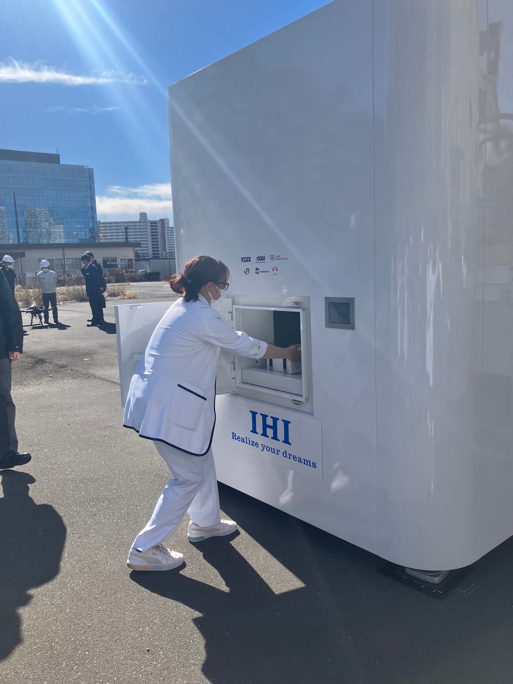 実証期間中、東京都病院薬剤師会会長の聖路加国際病院・後藤先生、昭和大学江東豊洲病院・柏原先生、がん研有明病院・山口先生、東京臨海病院・勝田先生をはじめとした病院関係者約40名にお越しいただき、ドローンポートを用いた医薬品輸送を体験いただきました。