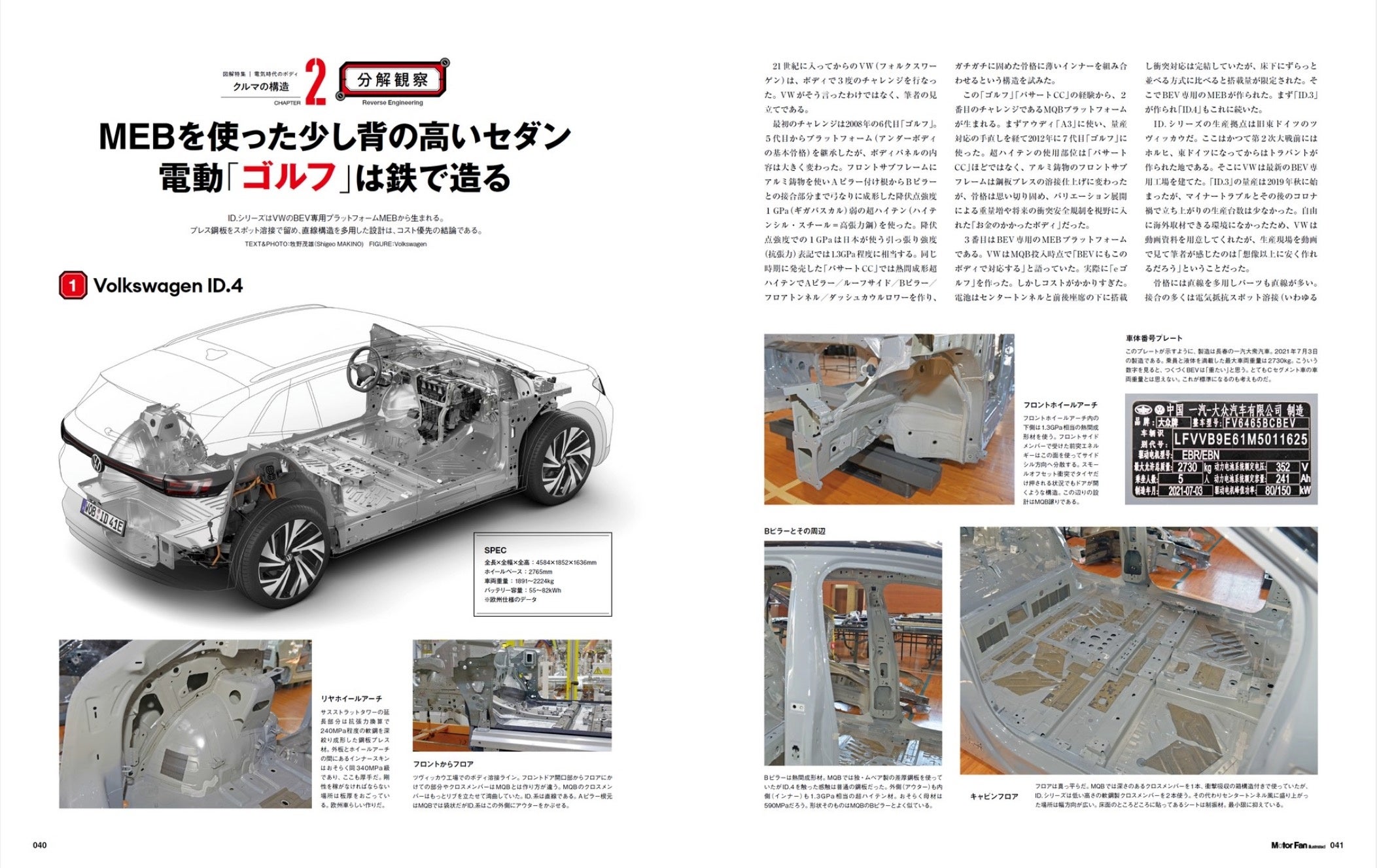 『モーターファン・イラストレーテッド』の読者諸賢だと、BIW:部品が何も装着されていない状態の自動車のボディをご覧になったことがある方も多いかもしれません。外板のパネルやフードは完成車でも普段から目にできるところなのに対して、内装材の裏側やシートの下、エンジンルームの中や、果てはパネルを外した内側の部材など、いわゆる骨格とも言えるボディの構造は各車さまざまで、「なぜここを曲げたのかな」とか「ここは重ねて作っているのか」とか「こういうふうに形を工夫しているのか」など、眺めていると時の経つのを忘れそうです。MFiの194号では、その「見ていて飽きない」ボディについて、とくに電動車の構造はこのところどのように工夫されているのかを観察する特集としました。そう、実際のクルマをバラバラにしたボディ部材をたくさん取材してきました。