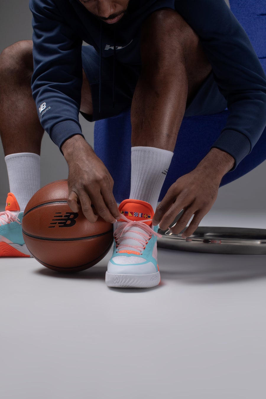 カワイ選手のシグネチャーシューズのオリジナルを大幅に軽量化したもので、選手本人からのリクエストで作られたものです。このセカンドバージョンは、カワイ選手の目標である「より軽く、より爆発的に」を実現するために、新しいパフォーマンステクノロジーを詰め込んでいます。フルレングスのFuelCellミッドソールと連動し、究極のエネルギーリターンを実現するパフォーマンスプレートをアップデートして搭載しています。アッパーにはNB HOOPSのデザインチームが開発した、軽量で優れたフィット感をもたらすFitWeavebLiteを採用。プレーヤーが必要とする部分に適応した伸縮性とサポート力を与えます。
