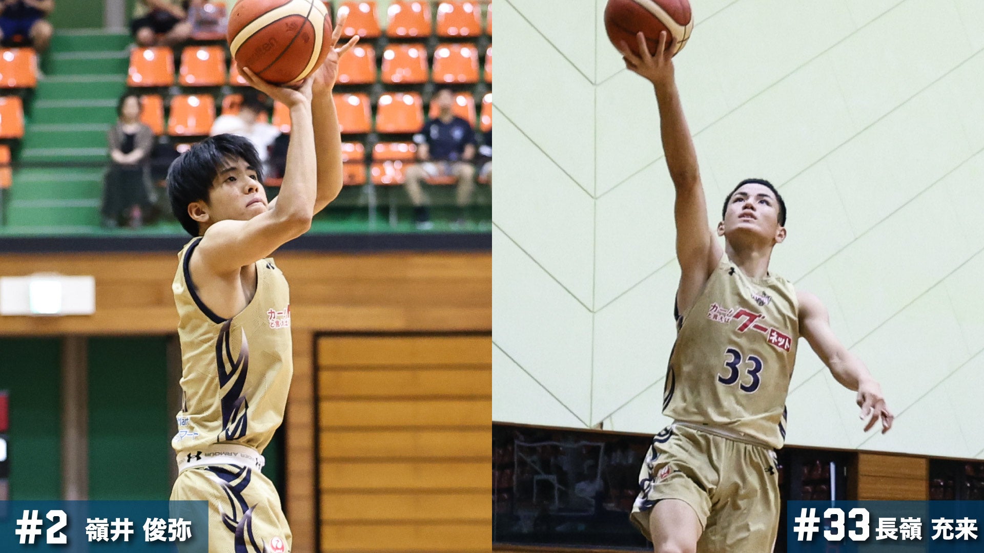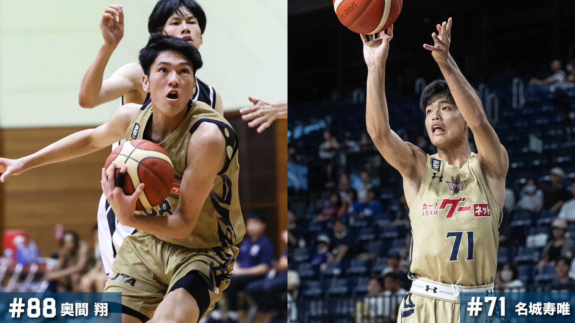 特に1、2年生の出場時間がこれまでに比べて大幅に伸び、2戦を合わせた平均スタッツで、1年生の#88 奥間翔選手が16.5得点、13.0リバウンド、2.5ブロック、2年生の#71 名城寿唯選手が8.5得点、6.5リバウンドを記録するなど、際立った活躍を見せました。#88 奥間選手は「佐取先輩がいない中で、自分が出る時は気持ちを入れてプレーしようと思っていました。インサイドで体を張ってリバウンドを取り、セカンドチャンスで得点を奪うことは普段から意識しているので、結果を残せて良かったです」と振り返りました。