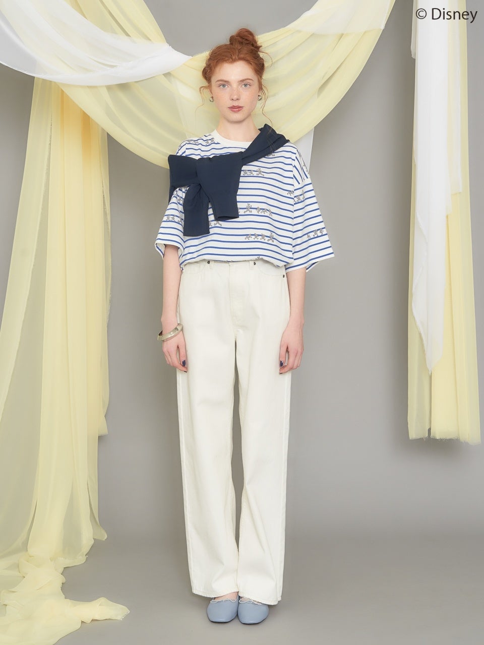 その他、ドナルドダックに加えて、ミッキーマウスなどのシルエットを散りばめたボーダーTシャツをラインアップ。キャラクターをイメージしたカラー展開や、キャラクターに立体感がでるよう発砲プリントで施し、遊び心のあるデザインにしました。