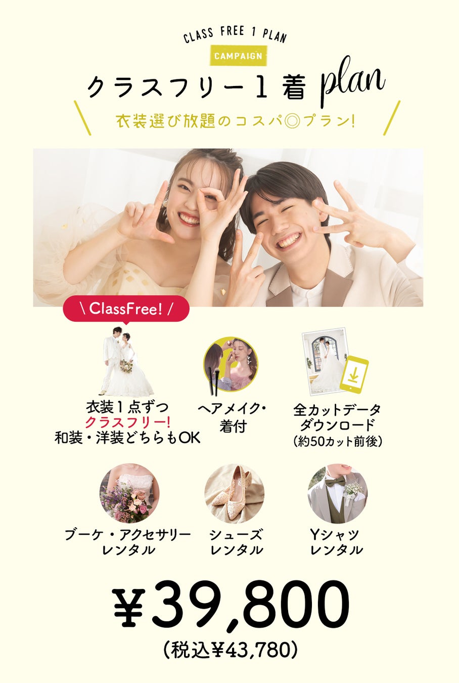 結婚式の前撮りにも嬉しい、SSランクまでクラスフリーで気軽に前撮りを楽しめます!