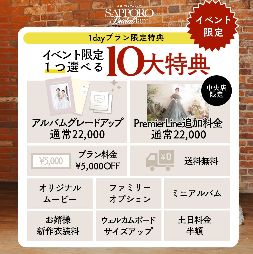 さらに!1dayプランまたはイベント限定のクラスフリーアルバムプランなら、最高級衣装"PremierLine"が無料に。(札幌中央店限定)