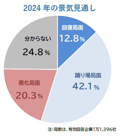 2024年の景気見通し、企業の4割超で「踊り場」を見込み 、「悪化」は前年より5ポイント減少