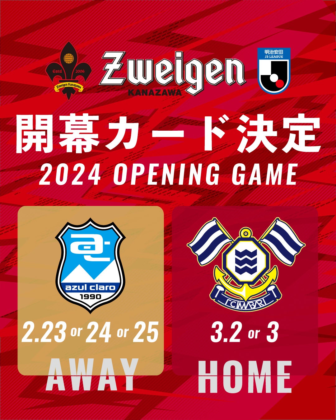 2024明治安田J3リーグ、ツエーゲン金沢の開幕カード及びホーム開幕カードが決定しましたのでお知らせいたします。