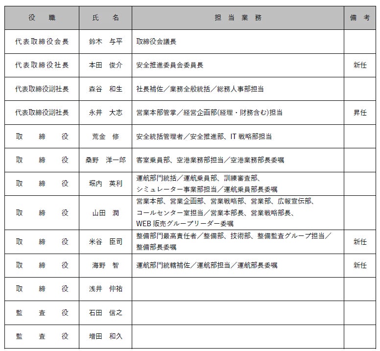 株式会社フジドリームエアラインズ(略称:FDA、本社:静岡県静岡市、代表取締役社長:楠瀬 俊一)は、2025年2025年6月23日(月)付の役員人事について、以下のとおり決定しましたのでお知らせいたします。