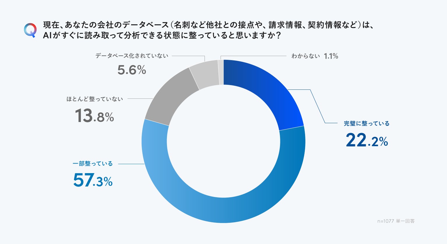 一方で、社内のデータベースが「AIがすぐに読み取って分析できる状態に完璧に整っている」と回答した人は22.2%でした。