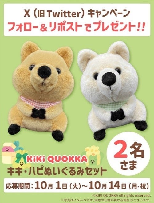 プライズゲーム用景品の展開を記念し、モーリーファンタジー公式 X・Instagramで「キキ・ハピぬいぐるみセット」が当たるプレゼントキャンペーンを開催いたします。