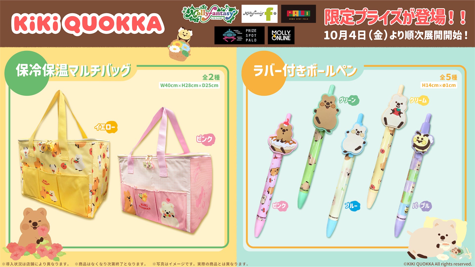 「KiKi QUOKKA(キキクオッカ)」がプライズに初登場!かわいい保冷保温マルチバッグとラバー付きボールペンが10月4日(金)よりモーリーファンタジー・PALOにて展開開始
