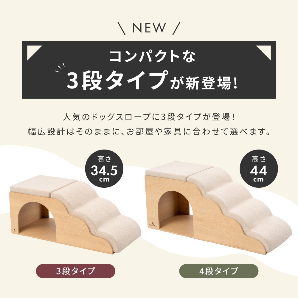 【新発売】人気のドッグスロープに“3段タイプ”が仲間入り!小型犬・シニア犬の足腰への負担に配慮した設計、お部屋に馴染むナチュラルデザイン。愛犬の快適な居場所づくりに。期間限定10%OFFクーポン配布中