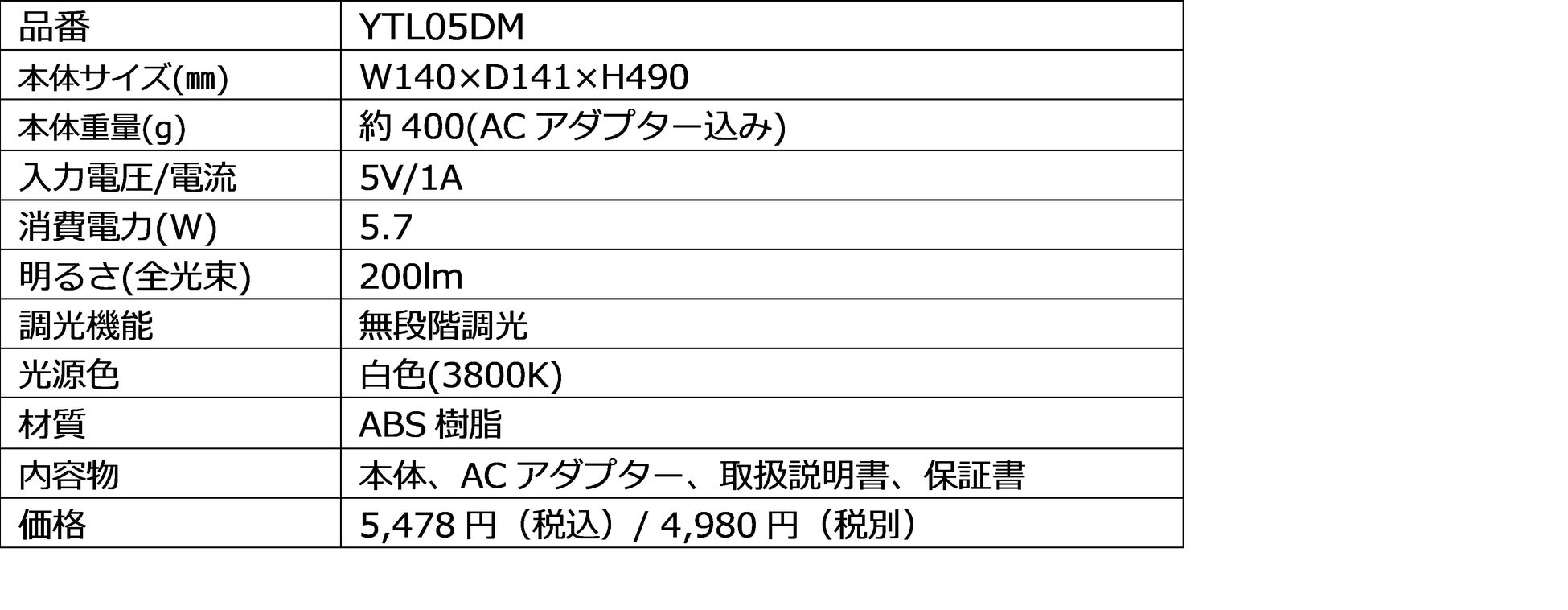 株式会社ヤマダホールディングス(本社:群馬県高崎市、代表取締役会長 兼 社長 CEO:山田 昇、以下、ヤマダホールディングス)は、2024年11月1日(金)より、スタイリッシュで機能性抜群のデスクライト「YTL05DM」を、全国のヤマダデンキ店舗(一部店舗を除く)およびヤマダウェブコム(https://www.yamada-denkiweb.com/)にて販売開始しました。