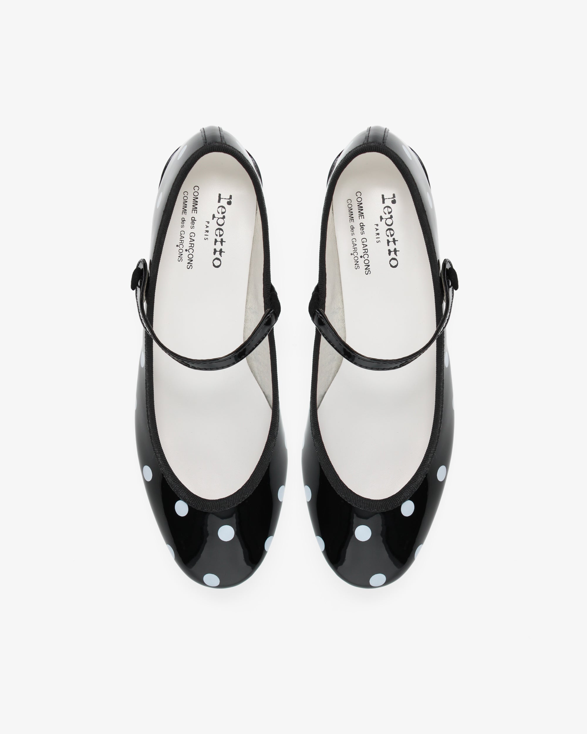 完成したシューズには、ハイドロディッピング(水圧転写)技術によって、グラフィカルなポルカドット柄が施され、レペットの時代を超越したエレガンスと、コム デ ギャルソンの視覚的な実験精神が融合することで、それぞれが唯一無二の作品へと昇華しました。