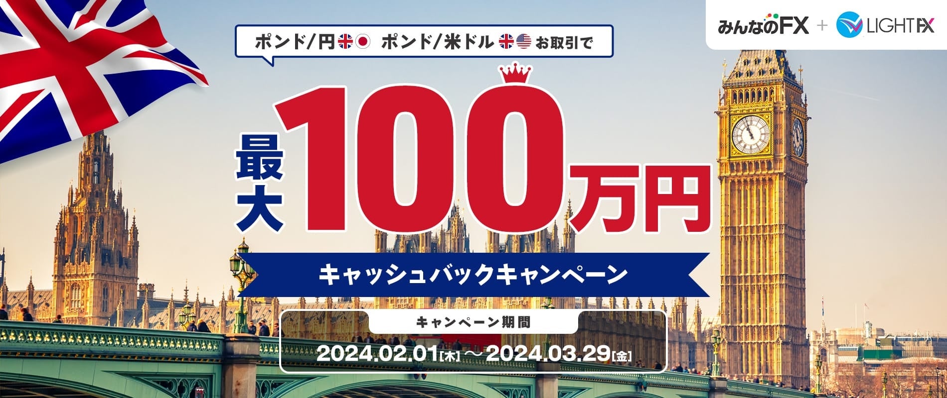 【みんなのFX】ポンド/円・ポンド/米ドルの取引に応じて、最大100万円をキャッシュバックするキャンペーンを実施します!
