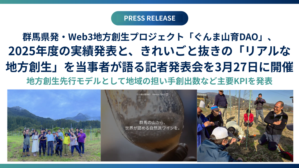 群馬県発・Web3地方創生プロジェクト「ぐんま山育DAO」、2025年度の実績発表と、きれいごと抜きの「リアルな地方創生」を当事者が語る記者発表会を3月27日に開催