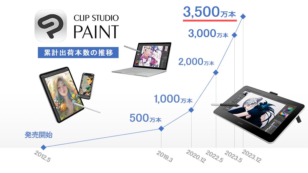 イラスト・マンガ・Webtoon・アニメーション制作アプリ「CLIP STUDIO PAINT」の全世界における累計出荷本数が3,500万本に