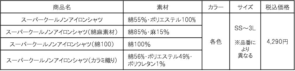 スーパークールノンアイロンシャツ商品特長