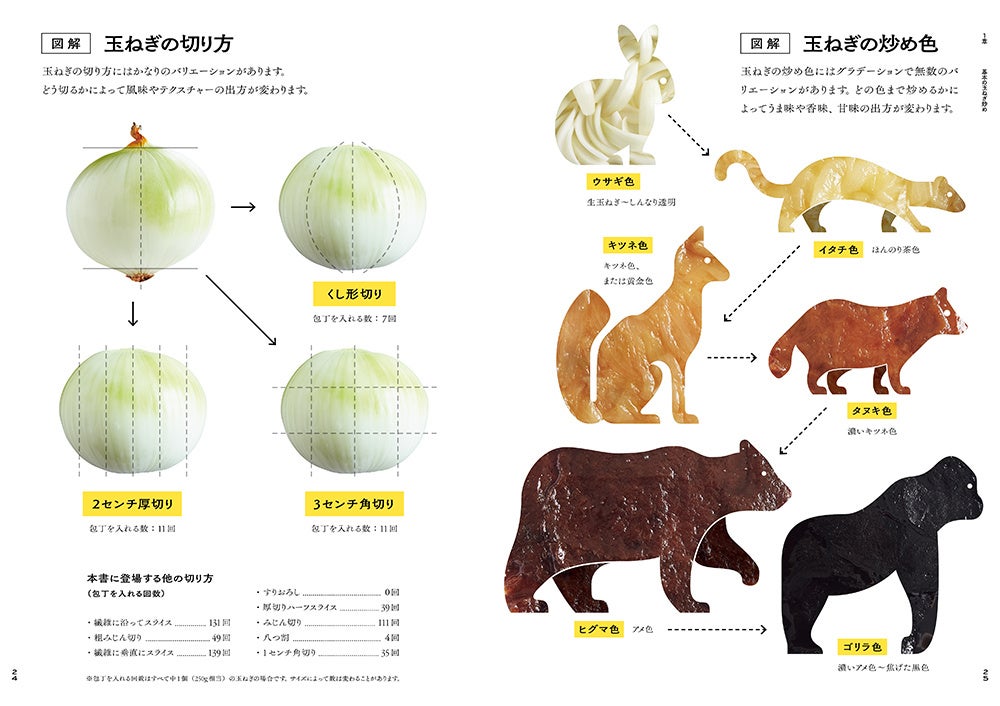 必ず成功するテクニック! これが、玉ねぎの新常識! / 基本のチキンカレー / やっぱり玉ねぎが、大事。 / 玉ねぎをどうすれば? / 玉ねぎはどうなるの? / [図解]玉ねぎの切り方 / [図解]玉ねぎの炒め色 / 玉ねぎの伝説:1 怠け者、玉ねぎを切る!