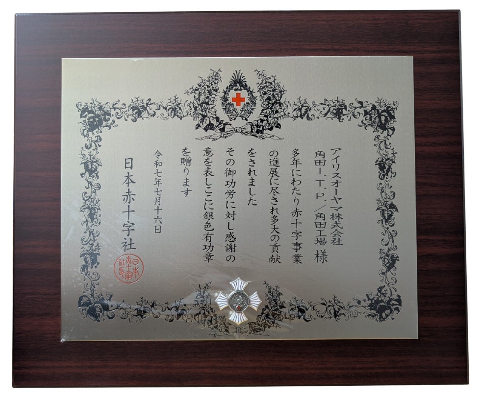 アイリスオーヤマ株式会社(本社:宮城県仙台市、代表取締役社長:大山 晃弘)は、2025年7月16日に開催された第61回献血運動推進全国大会において「銀色有功章」を受章しました。