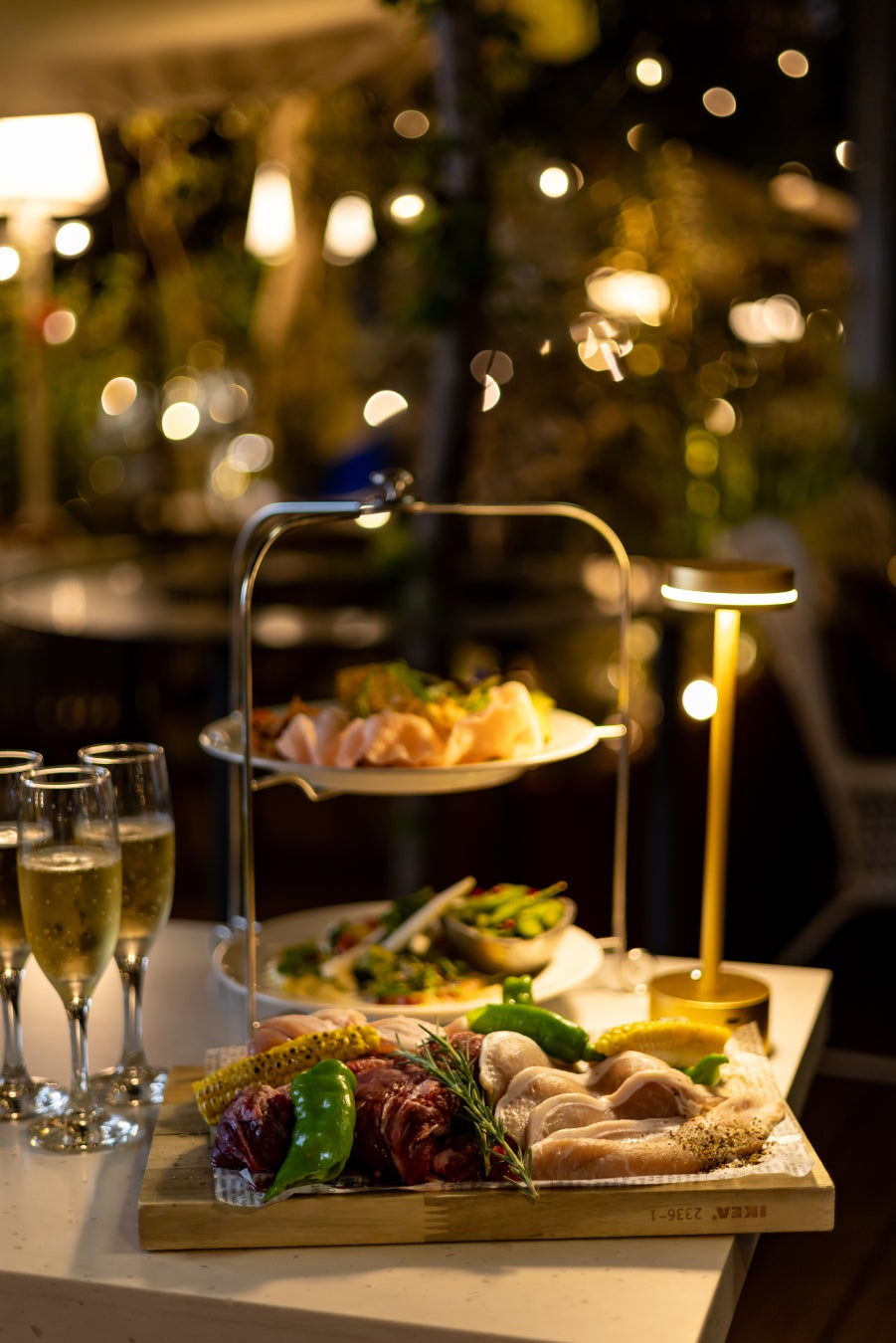 香ばしく焼き上げた肉は、肉汁がじゅわっとあふれ出し、食べ応えも抜群。海と山の恵みを一度に満喫できる、まさに究極のBBQ体験を梅田の真ん中でご堪能いただけます。