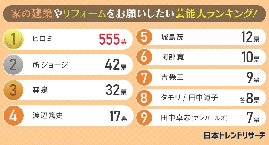 日本トレンドリサーチ・家の建築やリフォームをお願いしたい芸能人に関する調査