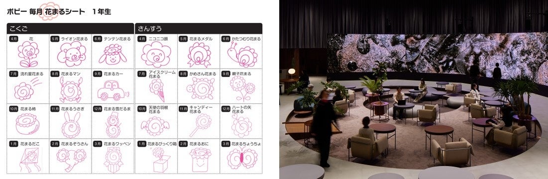 家庭学習教材「月刊ポピー」では、『丸つけの時間を幸せな親子タイムにしてほしい』という願いから、これまでもポピー会員さんと共に、植物や動物などをモチーフにした「オリジナル花まる」を数多くつくってきました。今回、会場にて「オリジナル花まる」を親子でつくるブースを設置し、そこで生まれた花まるが超巨大LEDスクリーンにも登場する「花まる作品展」を開催します。お子さんのやる気を引き出す、ご家庭オリジナルの花まるをつくって、丸つけも楽しみませんか?