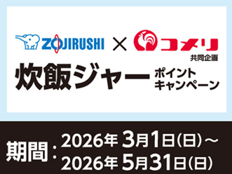 期間中、対象の象印炊飯ジャー、もしくは精米機をお買い上げの方に、抽選でポイントプレゼント。