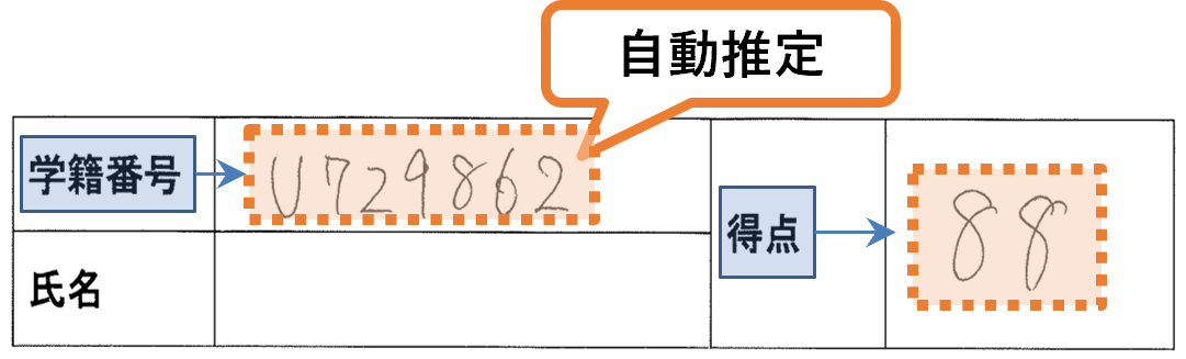 2、用紙のレイアウト解析時に見出しと手書きの値の対応付けを推測する機能