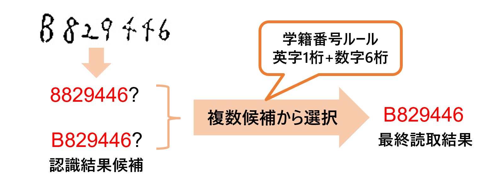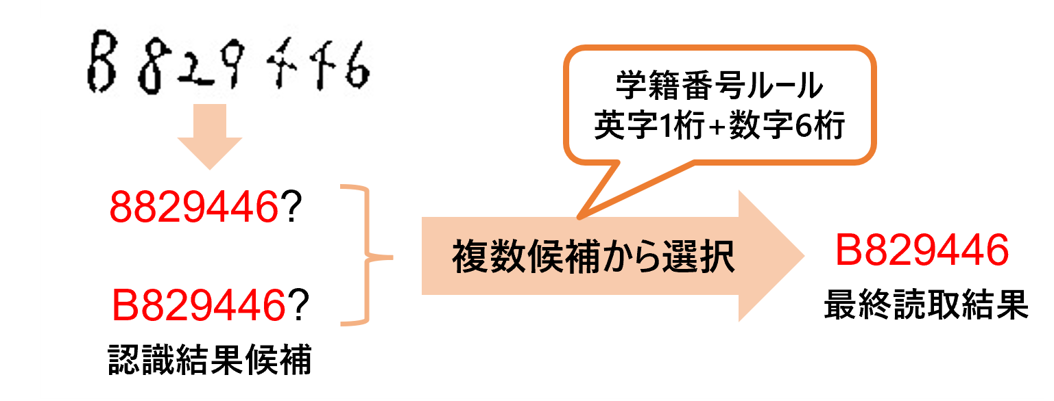 3、学籍番号の文字列ルールを与えることにより、OCR結果を補正する機能
