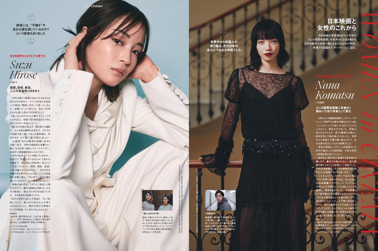 日本映画界をけん引する3人の俳優と、早川千絵、横浜聡子ら次世代を担う注目の監督の才能にフォーカス。小松さんは「8番出口」、広瀬さんは「遠い山なみの光」、髙石さんは「夏の砂の上」と、自身が出演し公開を控える話題作について、演じる上での葛藤や、作品への想いを語ってくれました。