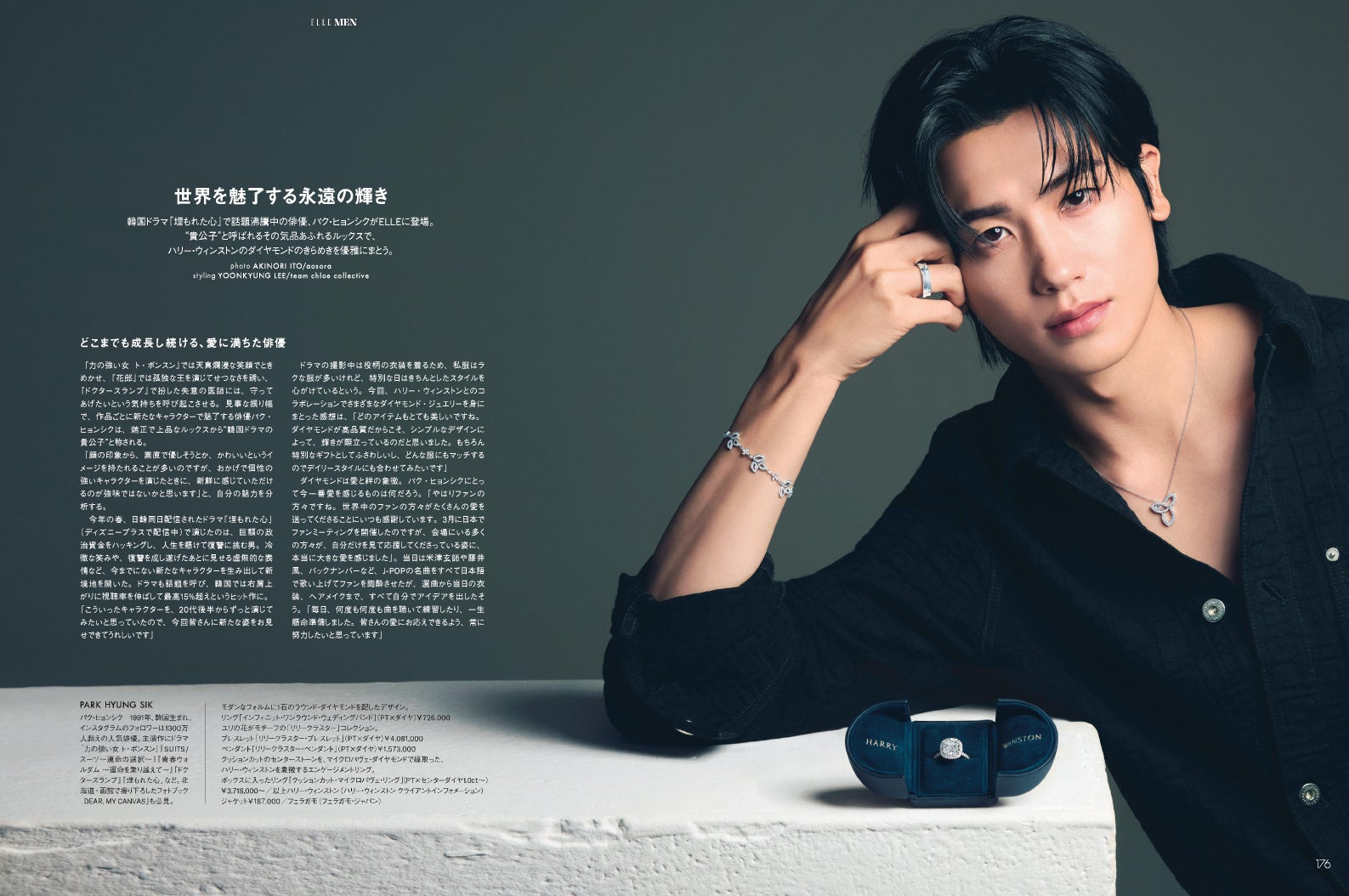 世界を魅了する俳優パク・ヒョンシクが、「ハリー・ウィンストン」のダイヤモンドジュエリー&ウォッチをまとって登場。特別版カバーでは挑発的な表情で、中面では気品に溢れたエレガントな姿で、その魅力を披露します。