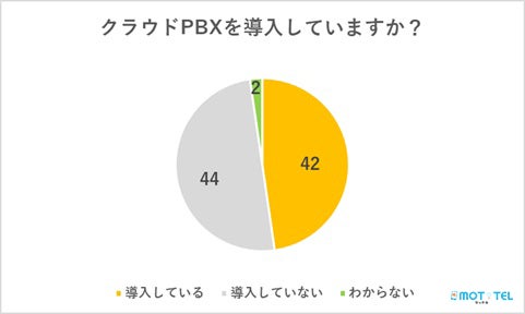 その結果、クラウドPBXを導入していると回答した企業のうち、過半数(約54%)が当社のクラウドPBX「MOT/TEL(モッテル)」を利用していることがわかりました。