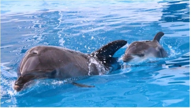その後、母子の健康状態や子育ても順調となり、明日の7月8日(火)より一般公開となります。親子寄り添って元気に遊泳し、「イルカの親子愛」ともいえる育児シーンが微笑ましく、愛くるしい姿を間近でご覧いただけます。